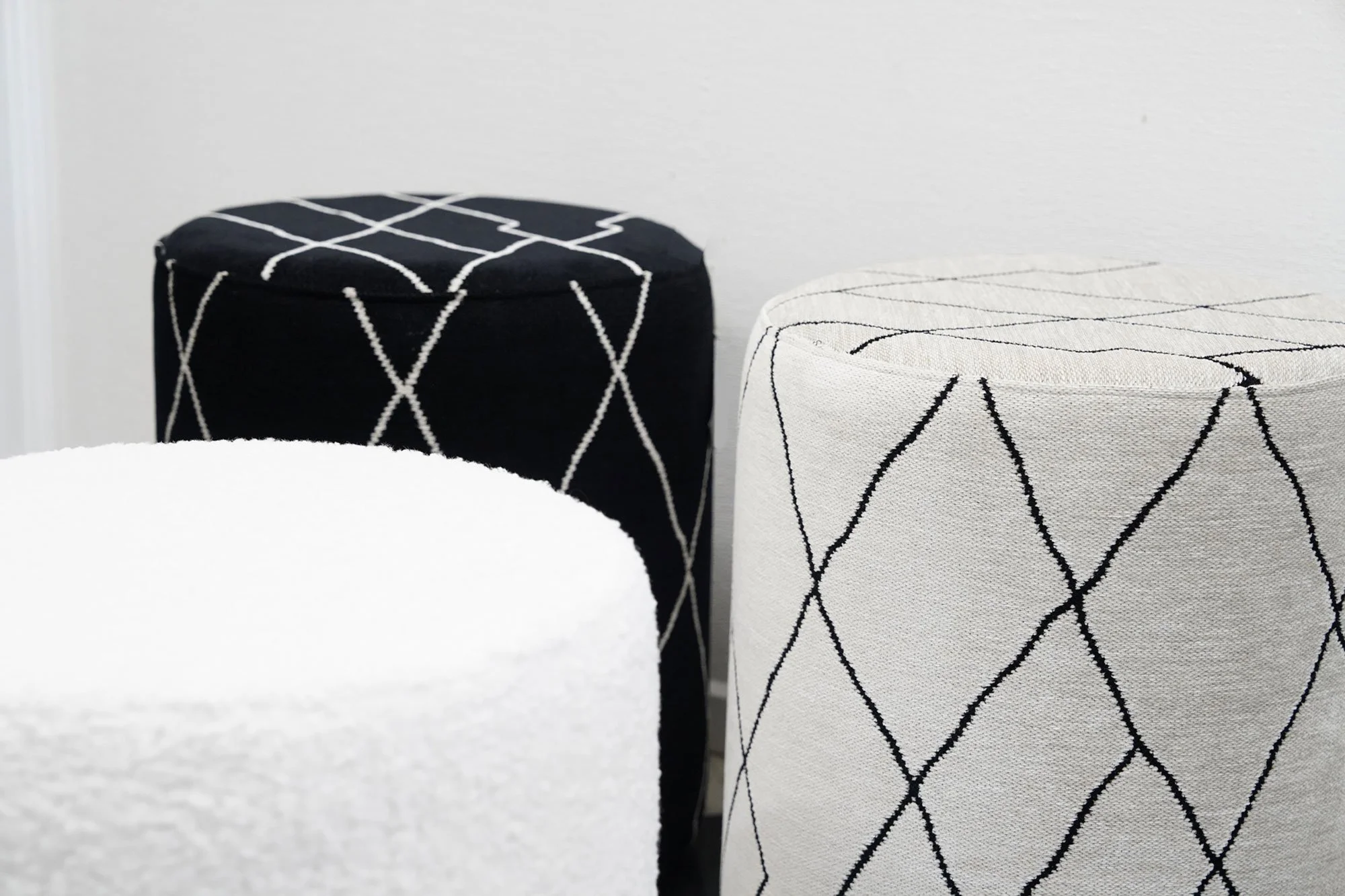The STELLA OTTOMAN is a sleek cylindrical ottoman that offers versatility, making it ideal as an accent piece, footrest, or extra seating in any contemporary living space.